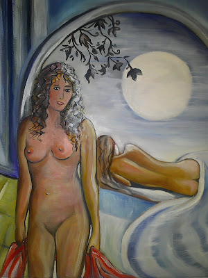 Y cuando es una mujer, quien ama a otra mujer, la complicidad se respira, la sensualidad se filtra y se confunde, la pasión se pasea desnuda y de puntillas, trepando por la espalda, colándose a hurtadillas por la ropa. La ternura corre, como dedos invisibles, dejando huellas que tatúan previsoras en la ausencia y las almas se confunden en entrega total, con ese dulce sabor que transforma la vida, en una historia que sonríe, de esa forma caprichosa y tan femenina... Surgen los besos, como bálsamos de ansiedades creando cada día un sentimiento que se reinventa y soñamos eterno. Pero, ¿Quién soy yo para hablar de amor?, algo tan íntimo, tan diferente en cada caso, tan único y extenso…He preguntado a muchas mujeres que aman a mujeres; y, dentro de las diferencias, todas han coincidido en “ese algo especial que no saben definir”. Por eso, expreso emociones, retazos de amor. Cada pincelada es una caricia, cada color un sentimiento, cada cuadro una historia, parte de mi vida. Pero es lo único que poseo y puedo compartir. Quiero de este modo aportar mi granito de arena a la gran tarea que aún nos queda. Porque vivimos en este sistema, somos familia, y sentimos la necesidad de ser cada día más visibles; en la política, en la sanidad, en las aulas, en la calle, y como no, en el arte, porque el arte lésbico aún busca un hogar, sin censura, libre, tan libre como es el amor.